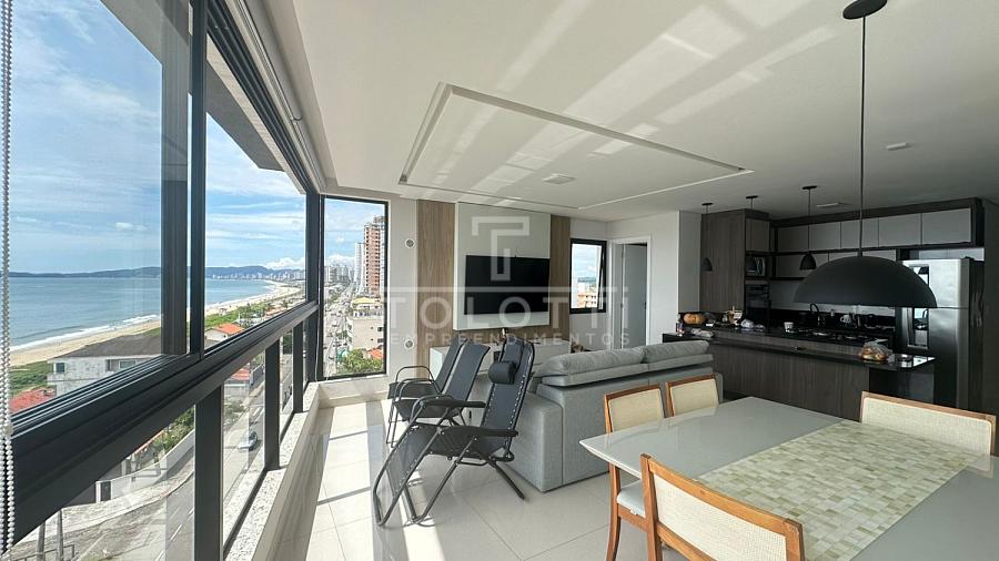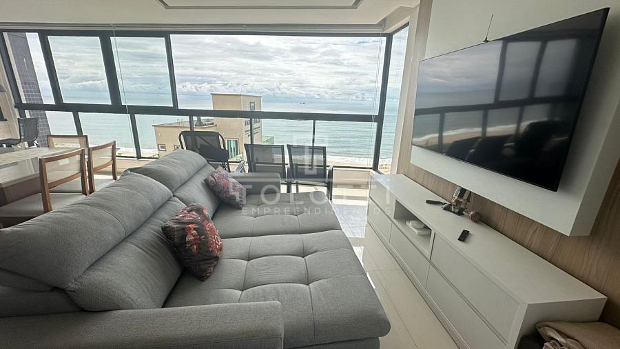 Com 104m² privativos, o imóvel conta com 3 dormitórios (1 suíte), sala integrada e churrasqueira de frente para o mar, perfeita para receber amigos ou curtir momentos em família com o oceano como cenário.