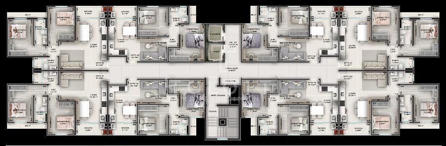Com 5 torres residenciais, cada uma com 8 pavimentos e 2 elevadores, este complexo abriga 320 apartamentos pensados para oferecer conforto e qualidade de vida.