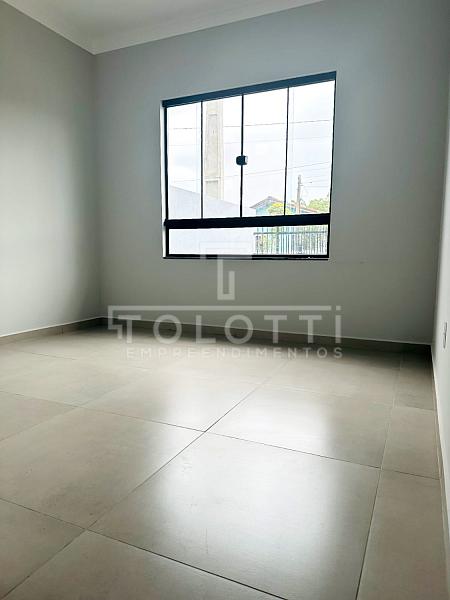 Essa casa de 71 m² privativos foi pensada para quem busca solidez patrimonial em um terreno de 140 m². O acabamento com porcelanato 80x80 dá o tom de durabilidade que se espera de um investimento atualizado. São dois dormitórios, incluindo uma suíte, com uma planta que integra copa, cozinha e sala de estar de forma fluida. O corredor lateral é um diferencial importante para manter a privacidade e o acesso direto aos fundos.