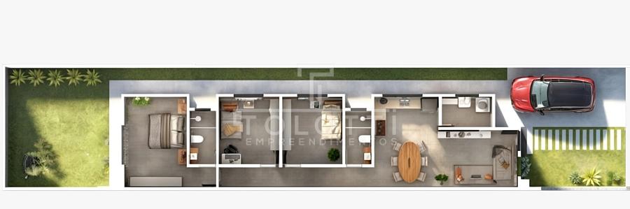 Possui 3 quartos, sendo 1 suíte com porta de acesso para área externa;
