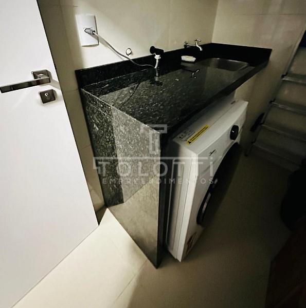 • Área de Churrasqueira com pia, armários planejados e fechamento em vidro;